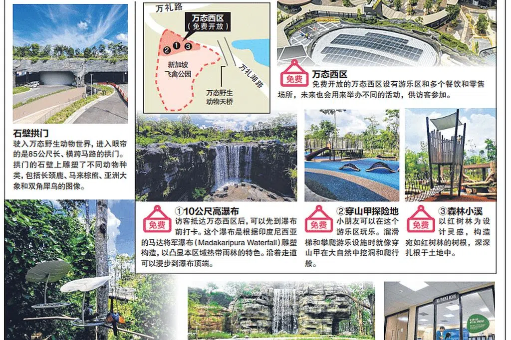万态保育集团星期四(3月30日)宣布,新加坡飞禽公园(Bird Paradise)毗邻新建的公共区域万态西区(Mandai Wildlife West)也会在同天迎接第一批访客。这个区域设有多个玩乐和餐饮场所,无须购票入场。