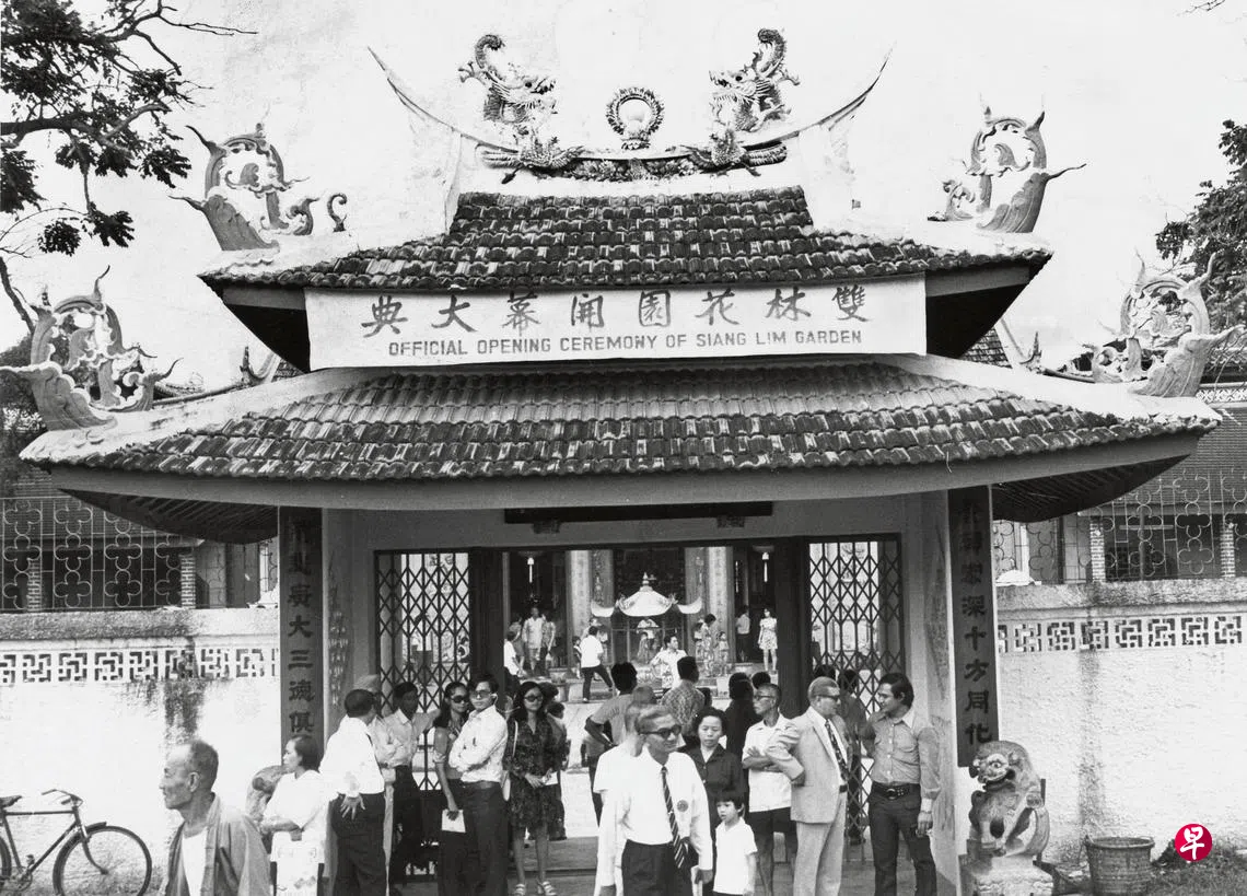 照片摄于1974年2月28日,旅游促进局耗资近20万元、历时三年多在双林寺兴建的双林花园举行了盛大的开幕典礼。