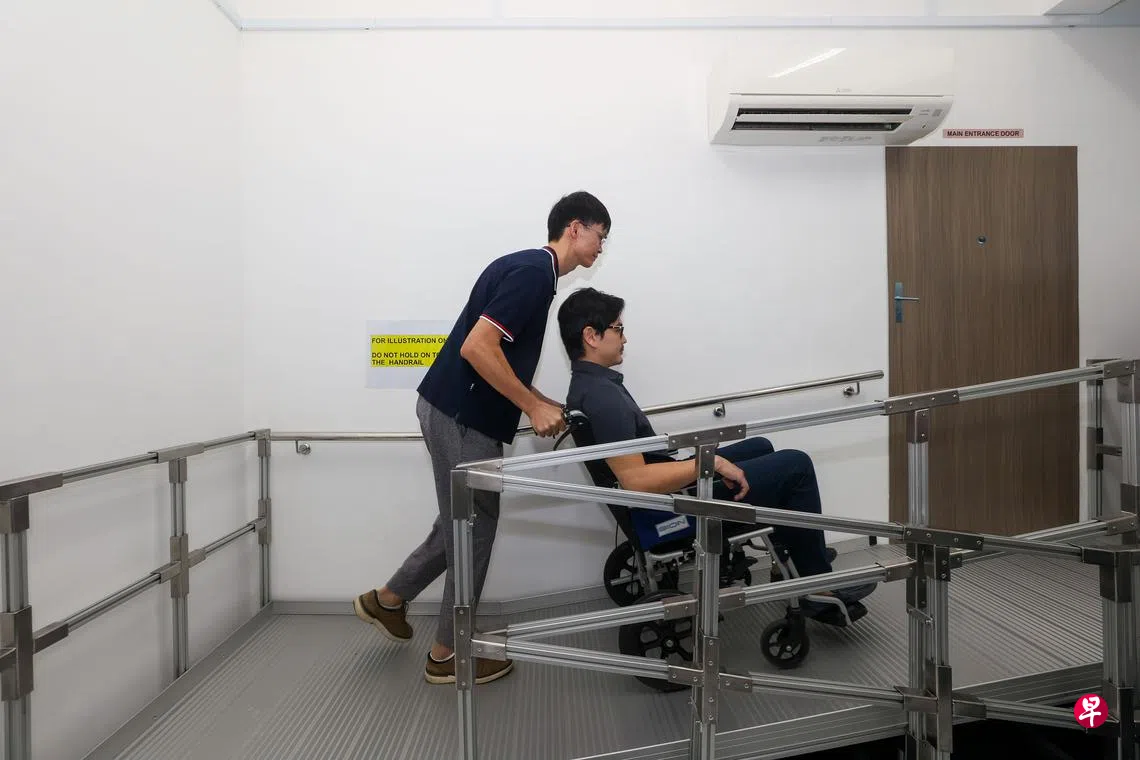 建屋发展局2012年推出乐龄易计划,一些居民选择可折叠斜坡道,方便轮椅使用者出入。不过,旧式斜坡道设计只适用于门口台阶三个以下的组屋,一些建于上世纪70年代至80年代的组屋有多达五级台阶。现在,乐龄易计划为此推出新型定制斜坡道。