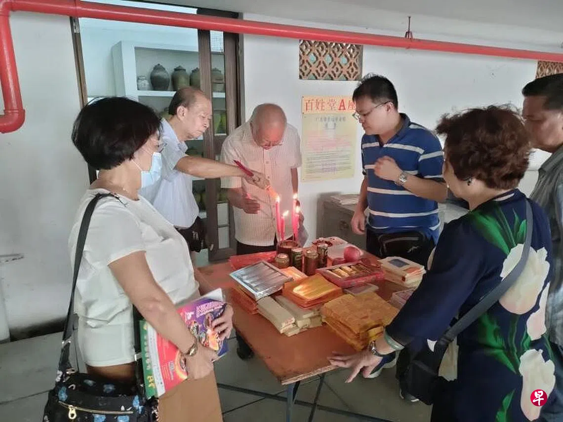 第一次拜祭于上个月14日进行。八名文物馆同仁,先是拜大伯公禀告,再拜祭“百姓堂”。祭品包括香火蜡烛、金银宝帛、水果斋菜等,仪式简单但不失庄重。