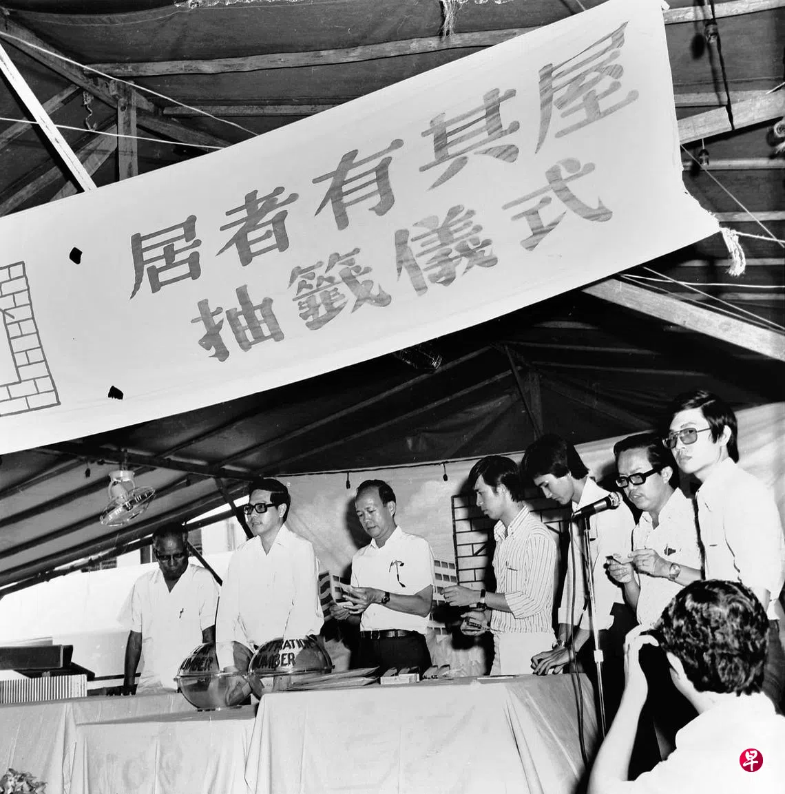 抽选新组屋一直以来都是每个家庭的大事,但早年这个过程更为隆重。1976年4月,时任交通部高级政务部长、金吉区国会议员王鼎昌为建屋发展局在大巴窑新镇建造的一批组屋主持抽签仪式,民众反响十分热烈。