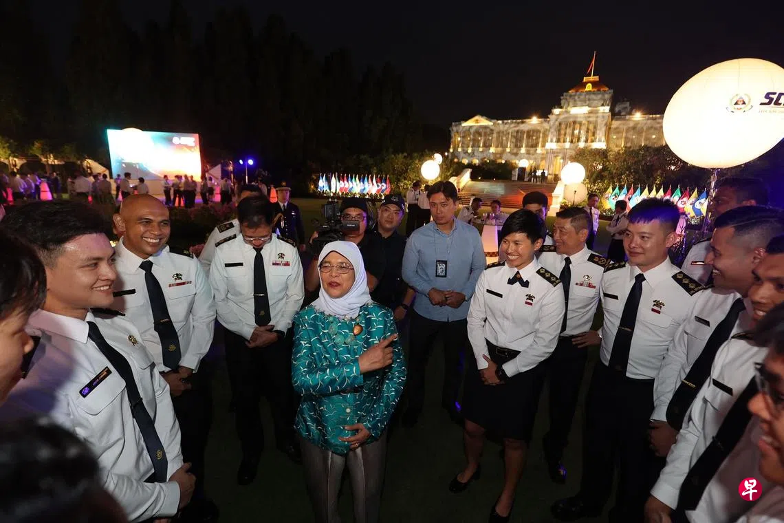 荣获民防自豪与关怀(白金)奖的卓佩璇上尉(29岁),与另外15名表现优异的民防人员,星期五(4月14日)从内政部长兼律政部长尚穆根手中接过奖杯。