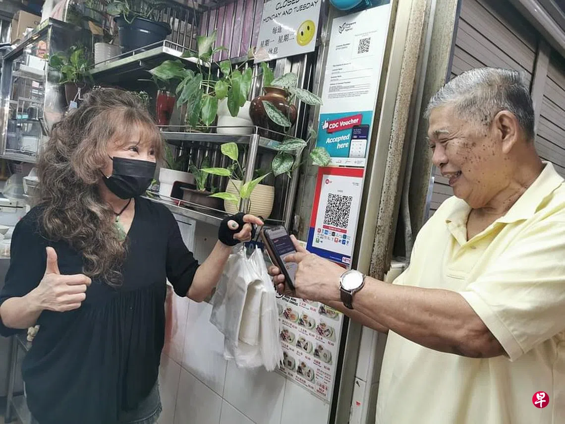 政府在今年1月派发新一轮社区发展理事会邻里购物券时,拥有Singpass账户的王书民,轻松通过手机领取价值300元的邻里购物券。
