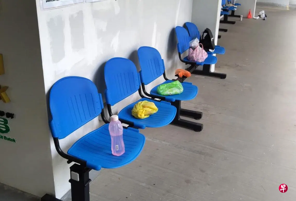 读者陈明华(60岁,清洁工人)向《新明日报》申诉,他上周五早上9时到该诊所拿药,看见排队处的椅子上放满水瓶、塑料袋或背包等个人物品,但现场却不见人影。
