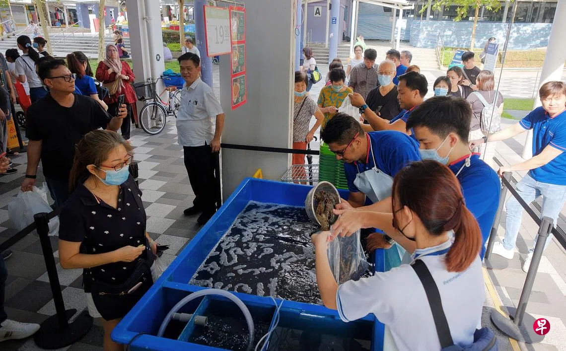 到下午约2时,超市1000公斤活虾基本售罄。位于兀兰民事中心和义顺环路第849座的两家职总超市,会分别在星期四和五早上9时售卖活虾。