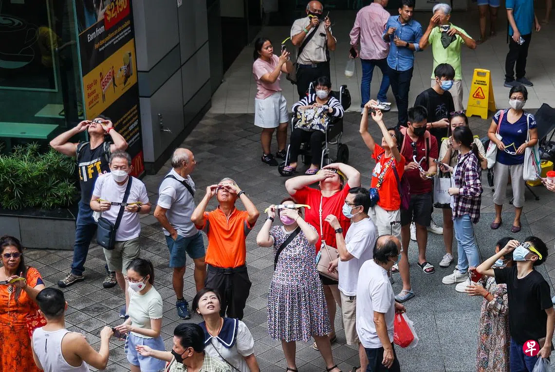 星期四(4月20日)上午10时54分起至中午12时58分,新加坡原本可观测到日偏食现象。日食在上午11时55分达到峰值时,月亮会覆盖太阳的约15%。无奈天公不作美,不少天文爱好者特别抽出时间希望欣赏这一难得的天象,却只能扫兴而归。