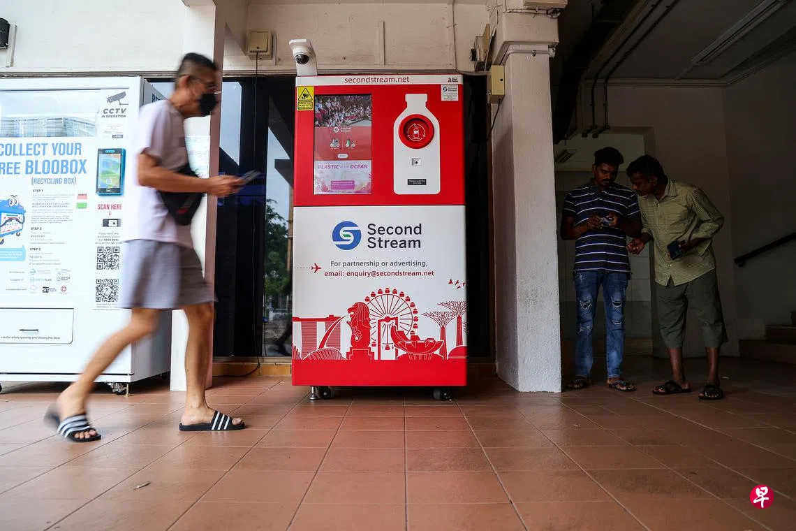 配合2025年4月落实的饮料瓶罐退费制,义顺市镇理事会在组屋底层设置瓶罐回收机,鼓励居民养成回收瓶罐的好习惯。