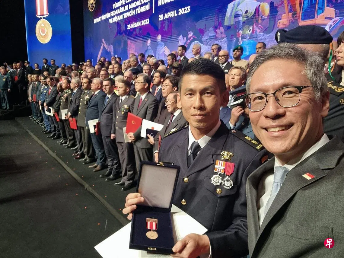 新加坡民防部队获得土耳其颁发的感谢奖牌,表彰狮心行动队员在今年2月在土耳其大地震搜救行动中的贡献。