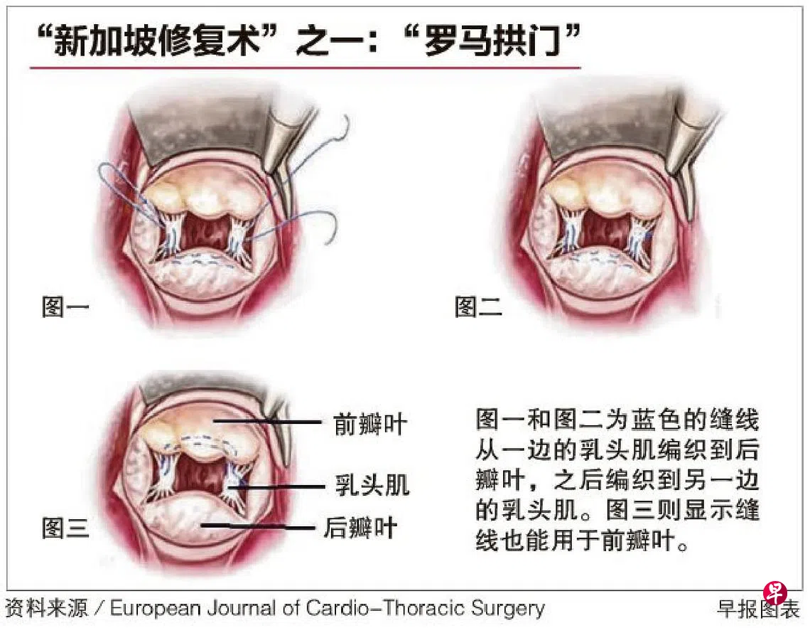 国大心脏中心心胸血管外科主任兼高级顾问医生科菲迪斯教授设计的12种程序,全归类为“新加坡修复术”,向各国心脏外科医生这40多年来采用的标准——法国心脏瓣膜修复术看齐。