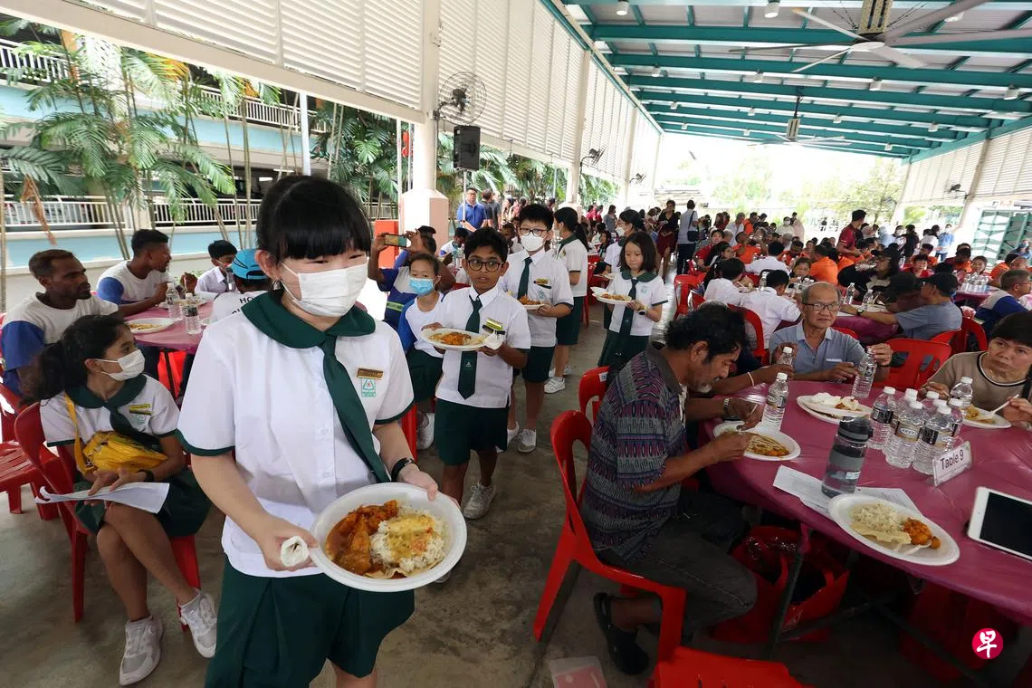 武吉班让公民咨询委员会星期四(4月27日)中午在社区举行了一场答谢午宴,在歌声与舞蹈的欢乐气氛中,正华小学五年级的51名学生代表,为受邀的客工和清洁工送上礼包。