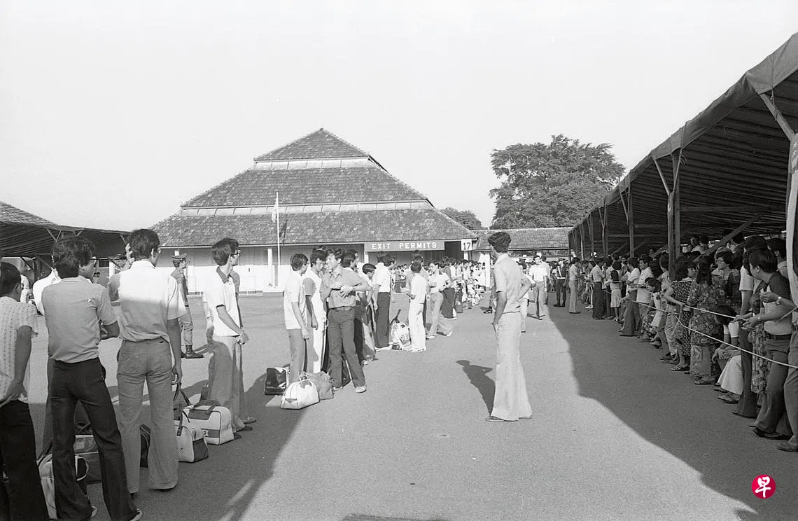 这些拎着背包的青年,有些是刚毕业的高中生,或是已步入职场的年轻人,而他们的父母就在不远处的棚屋里,依依不舍地目送着儿子排队登记入伍。