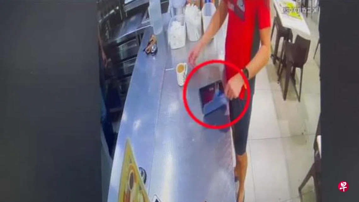 无惧40台电眼,男顾客光天化日下顺手牵羊,在一家清真食肆拿走一台平板电脑,事后还坐下把饮料喝完才离开。