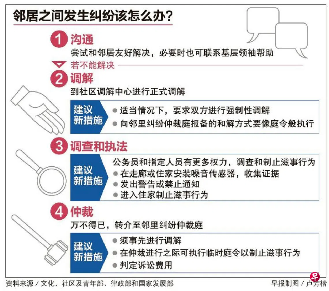 为更好地处理和解决邻里纠纷,文化、社区及青年部、律政部和国家发展部针对社区纠纷管理框架提出三大方面的新措施。