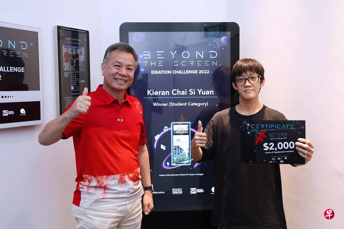 蔡思源是新加坡理工大学的大一生,修读用户体验和游戏设计。2022年,他参加梯媒创文(Target Media Culcreative)与裕廊集团和新工大联合举办的“Beyond The Screen“构思挑战赛,这次比赛的题目是如何改良电梯里的数码显示屏。