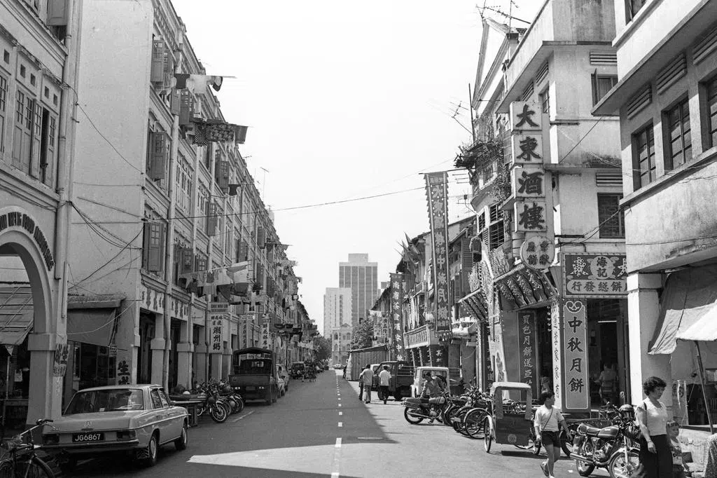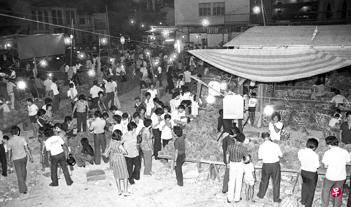 1981年6月18日,街上人头攒动,大家都流连在榴莲摊附近,目测上吨的榴梿就这样一箩筐一箩筐地摆在地上,让人好奇当时一公斤榴梿是什么价位。