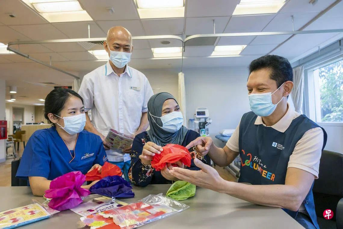 埃德蒙起初抽出时间,帮忙筹备樟宜综合医院的公共论坛和活动,后来加入樟宜综合医院的老年日间医院,为住院的年长人士送上温暖。