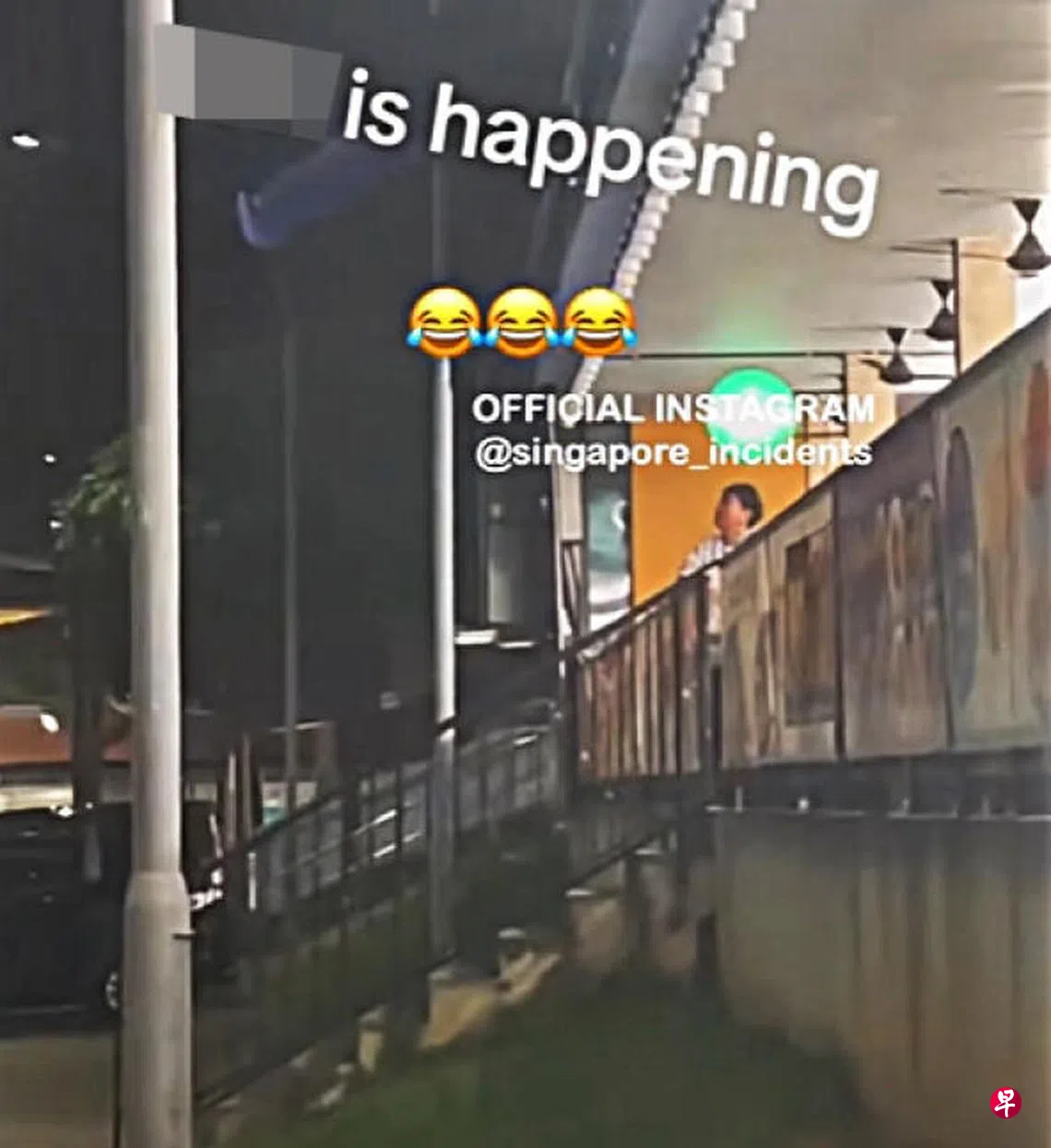 根据网上流传的视频,一名阿嫂当时正在咖啡店对着对面的组屋大喊。