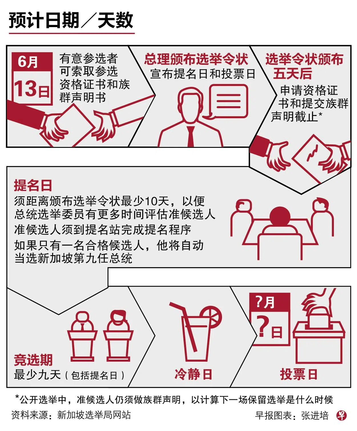 主管公共服务的教育部长陈振声今年5月10日书面答复国会询问时说,目前约有50名在公共服务部门担任公职的人可能符合参选总统的资格。超过1200家企业的股东权益超过5亿元,曾担任这些企业最高执行职位的人也可能符合参选资格。