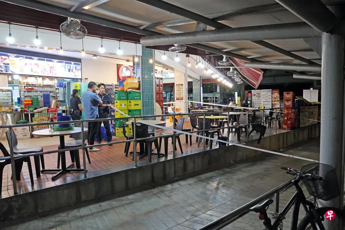 这起打架事件发生在星期一(5月29日)晚上10时15分,地点是后港1道第107座组屋楼下的S11美食中心。