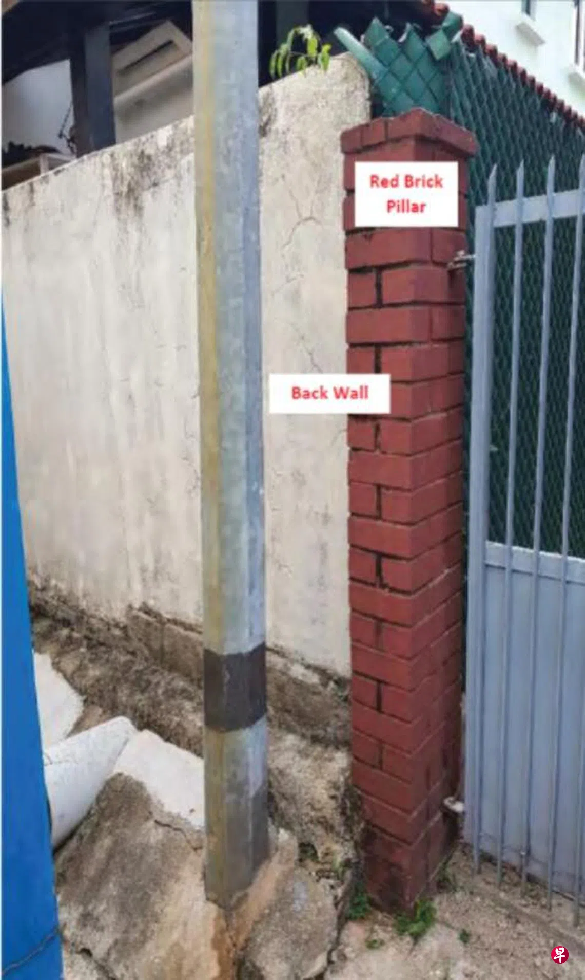起诉人表示,两间洋房中间有一个用红色砖头砌上的柱子,邻居在建新围栏时,将柱子拆掉,导致起诉人住家围墙一角出现缝隙。
