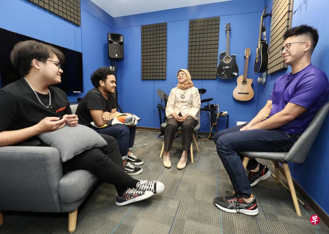 哈莉玛星期三(5月31日)早上到关怀机构(Care Corner)位于淡滨尼第943座组屋的青年服务中心,听取关怀机构青年组助理署长骆亮勋的汇报,了解旗下Youth GO!计划如何通过五个阶段,帮助边缘青少年重回正轨。