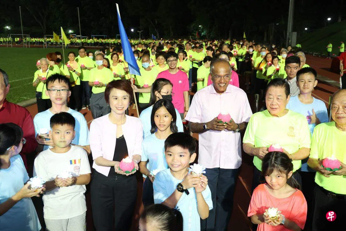黄娥珍(65岁,退休人士)和好友陈玉枝(80岁,退休人士)结伴而来。黄娥珍说:“除了疫情期间,我每年都会参加这个活动,它不仅是为了纪念佛祖释迦牟尼,还为众生祈福,希望国泰民安、世界和平。”