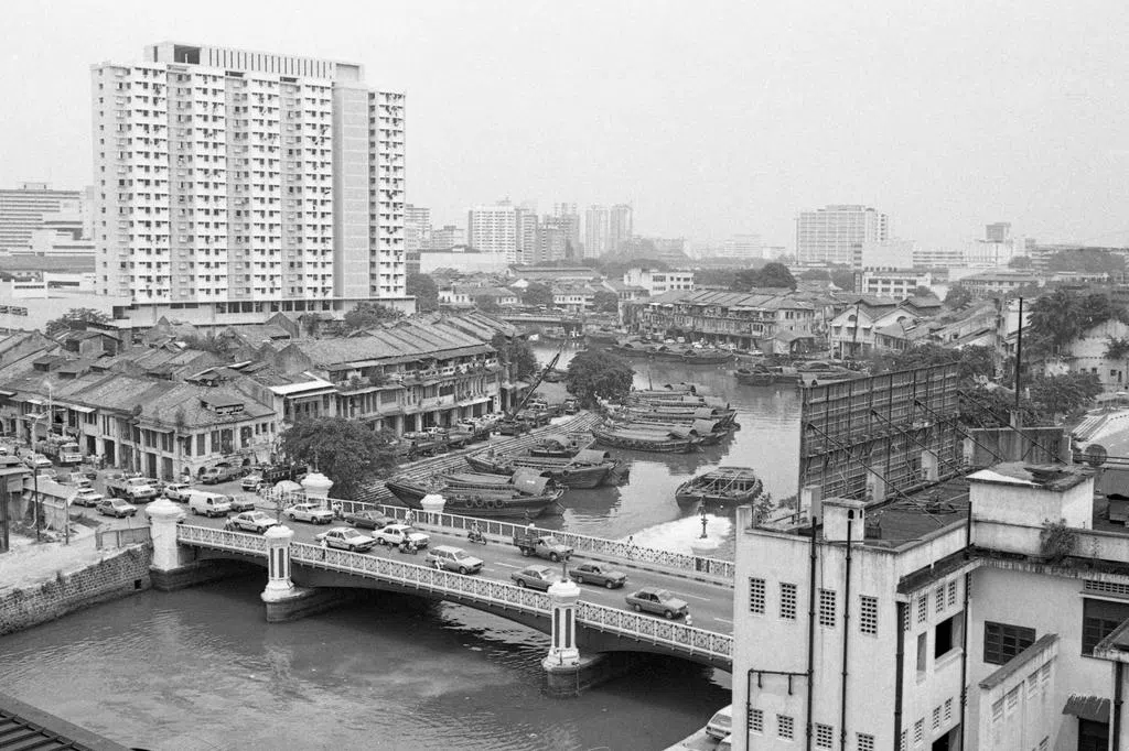 由于工业化和城市化,新加坡河在1970年代环境卫生极差,河岸两侧是一片低矮和拥挤的建筑。