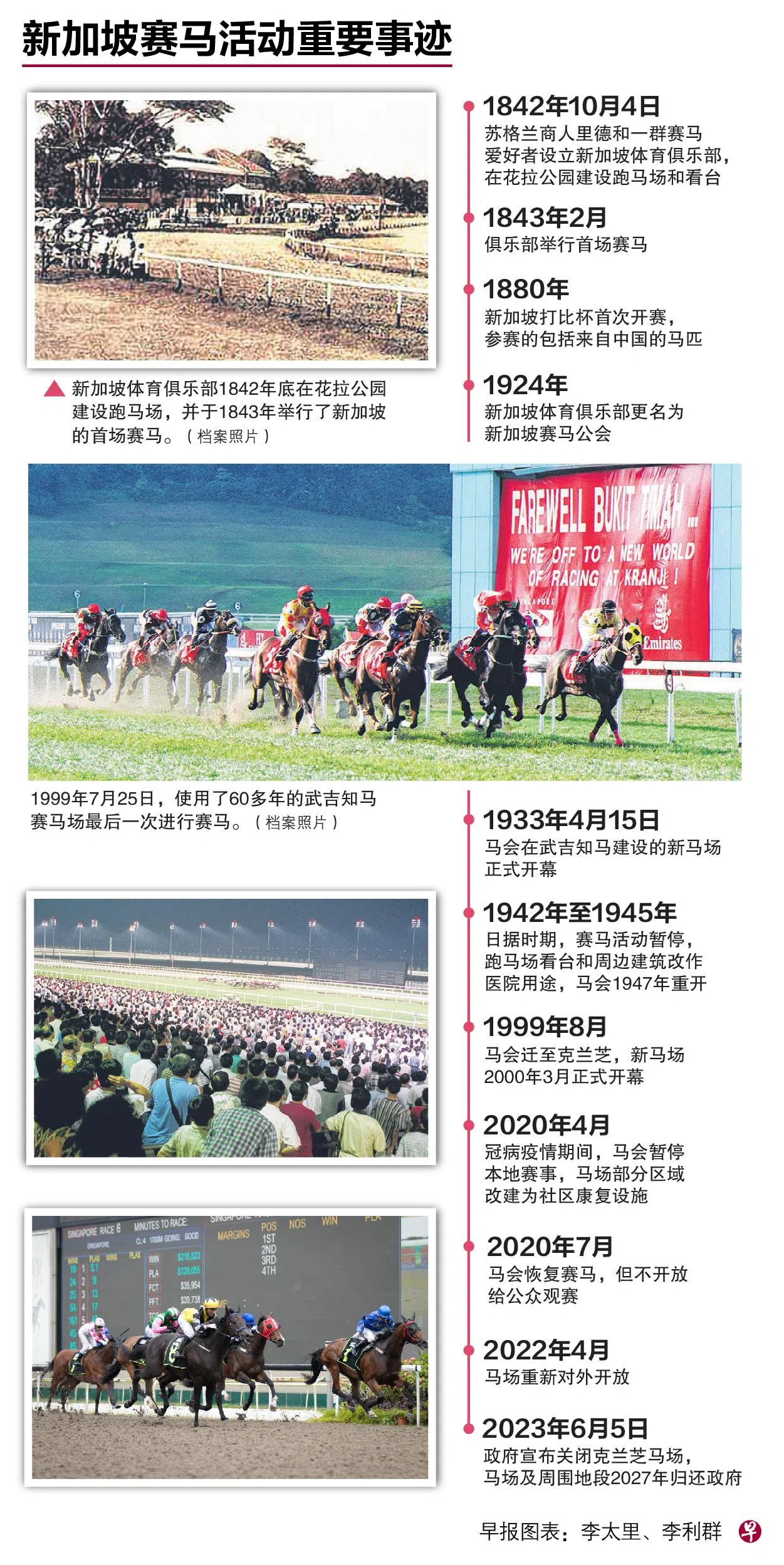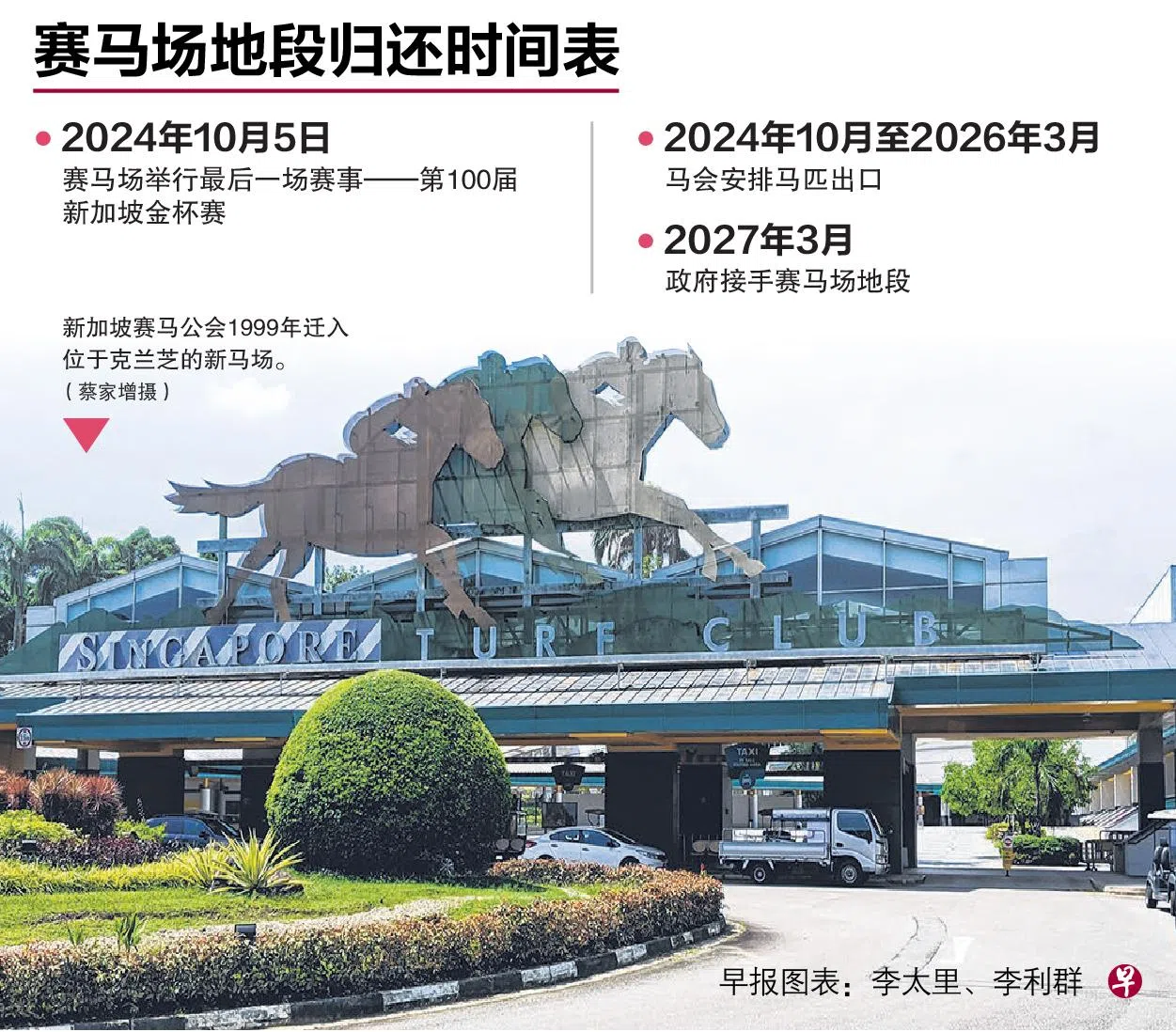 在本地已进行超过180年的赛马活动即将画上句点,政府宣布收回克兰芝马场所在土地作为住宅及休闲用途,包括兴建组屋。2024年10月5日的第100届新加坡金杯赛事,将是本地的最后一场赛马。
