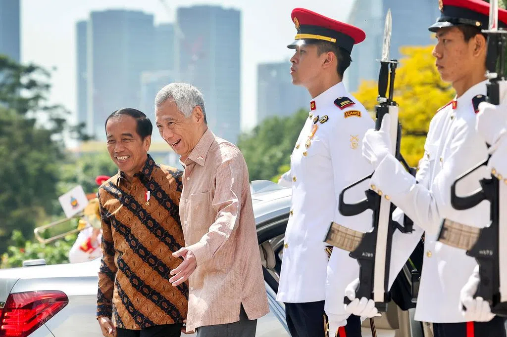 李显龙总理(左)冠病康复后,星期三(6月7日)设午宴,以鸡饭招待来访的印度尼西亚总统佐科。