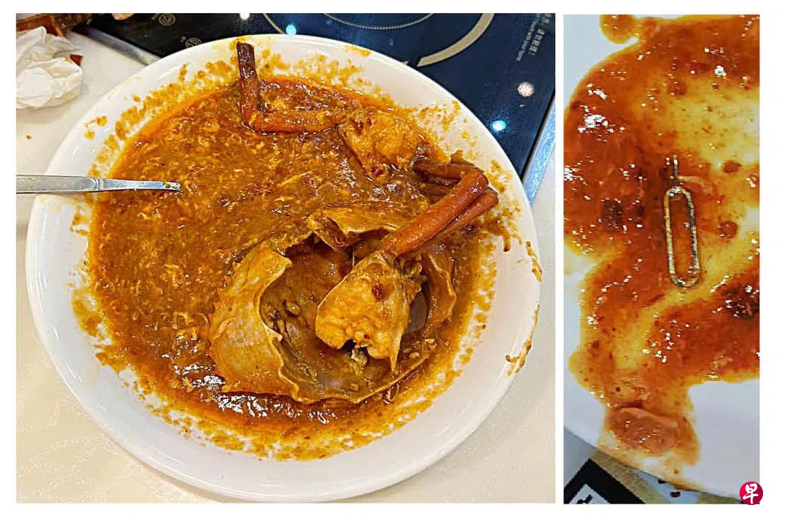 商人申诉,母亲节带七旬母亲光顾餐馆吃辣椒螃蟹,岂料竟吃出两公分长的手机卡针,马上倒胃。
