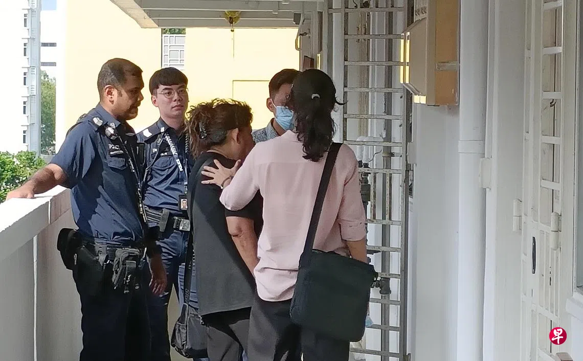 警方调查期间,一名自称是阿叔女友的妇女,在警方带领下站在单位外认尸并频频拭泪,显得非常哀伤。