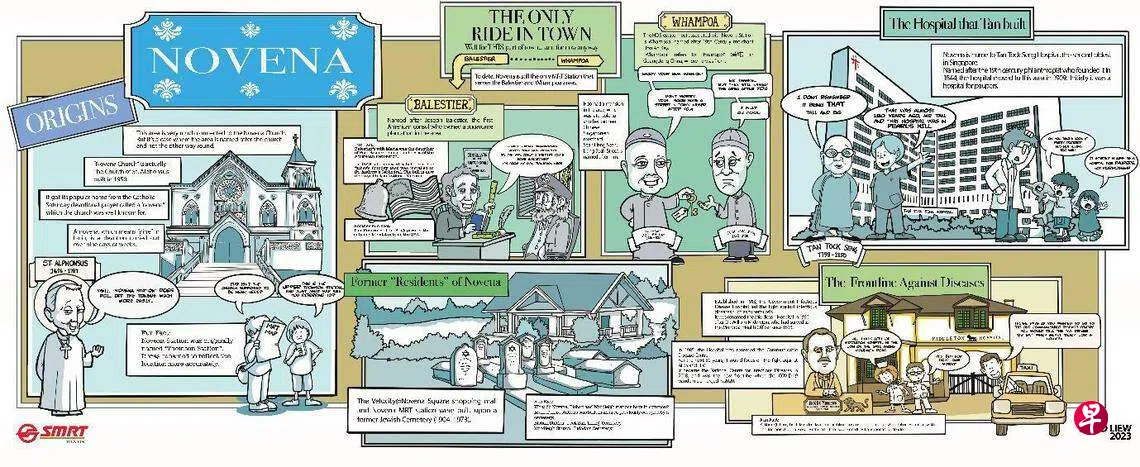 “漫画联系”是SMRT和本地艺术家联手合作的计划,旨在为全岛35个地铁站布置历史壁画,诺维娜是第12个完成壁画装置的地铁站。