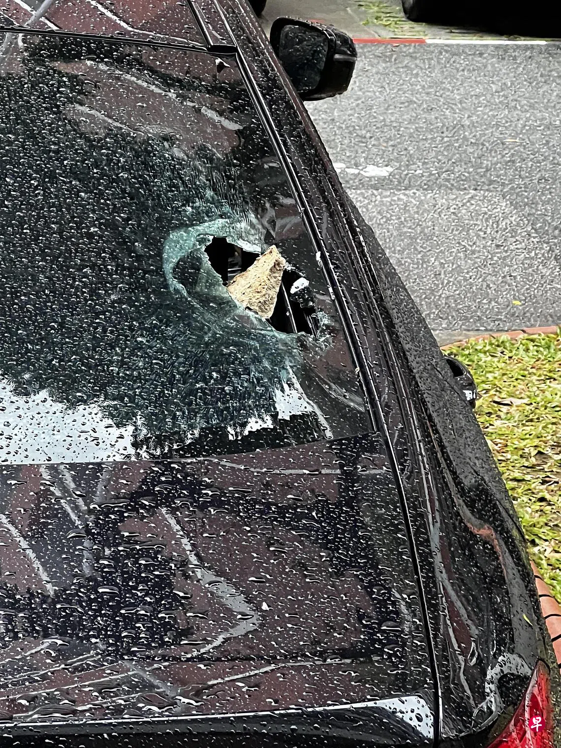 组屋外墙砖块脱落,路人险些遭殃,楼下宝马汽车被砸出个洞。