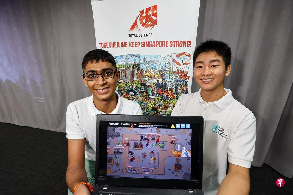 新加坡国立大学附属数理中学的学生推出新网络游戏,以塔防游戏为灵感,助青少年更好掌握全面防卫的六个支柱,了解全面防卫的重要性。