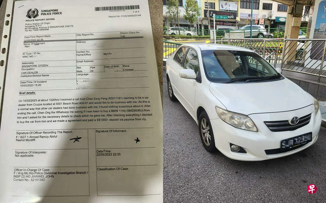 二手车行Star Performance Motor王姓老板(28岁)告诉《联合早报》,他在今年3月15日接到陈姓中间商的来电。对方声称,通过朋友得知王老板的车行,并称自己是Cruzze车行老板,主要充当中间人,帮车主转让旧车,他当时开价5万5000元,要出售一辆宝马汽车。