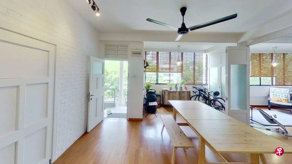 这个在茂源台(Moh Guan Terrace)第50座组屋四楼的单位,地契剩49年。它是一个由两个相连三房式单位打通的“霸级”单位,面积达176平方米,相等于1894平方英尺,比一般四房式单位大六七成左右。由于面积大,单位的成交尺价只有792元。