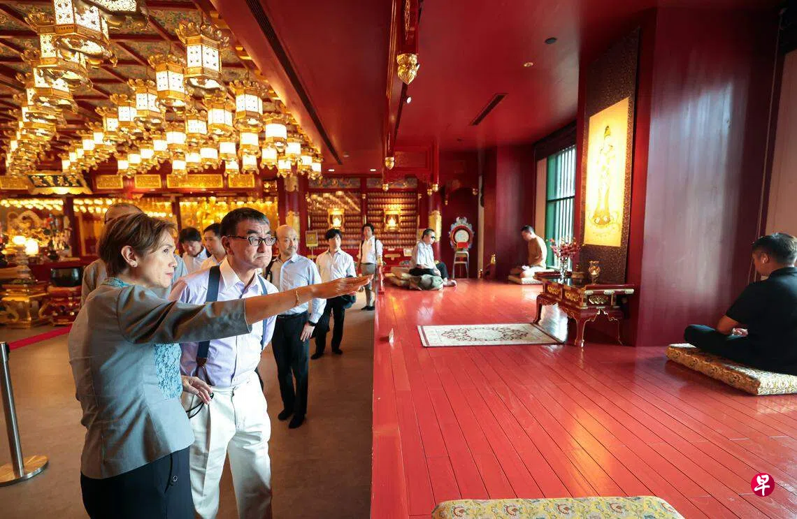 杨莉明于6月23日(星期五)在脸书贴文,分享同河野太郎会面的细节,包括邀请他到坐落于牛车水的佛牙寺龙华院参观。