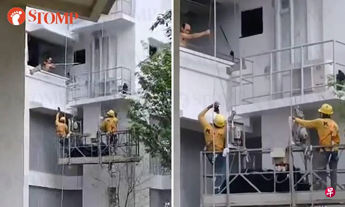 近日来,一则视频在STOMP网站上流传,一名男居民与安装防防鸟网的施工队起冲突,甚至伸竹竿阻挡、捉住吊架绳索。