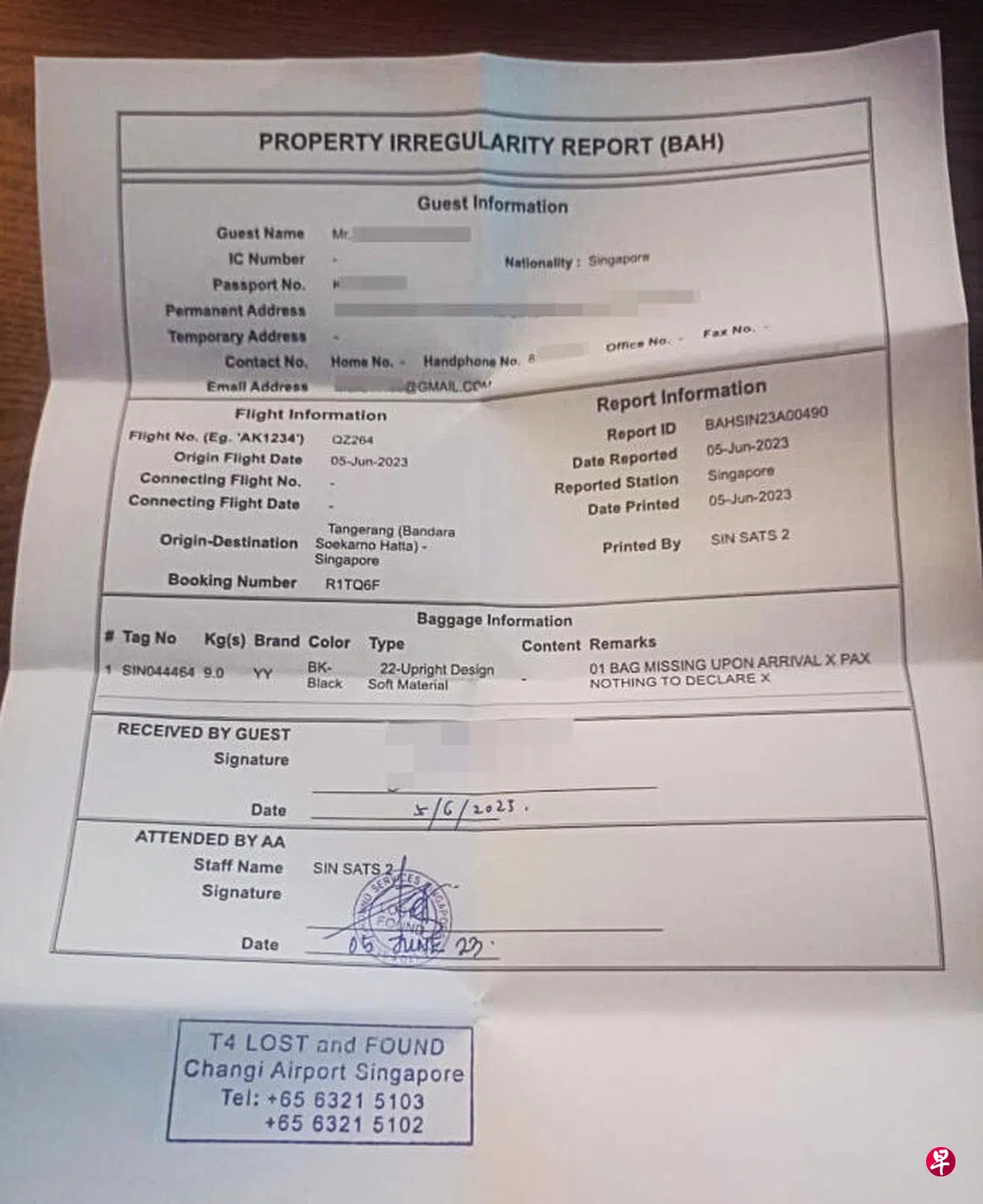 事主萧明华(56岁,销售人员)告诉《新明日报》,他与家人于6月5日搭乘亚航(AirAsia)QZ264航班从雅加达飞回新加坡,岂料去取托运行李时,等了20多分钟后,依然没看到自己的行李箱,深感不对劲。