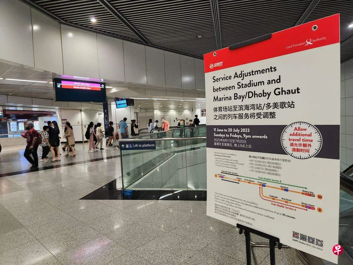 陆交局早前宣布,地铁环线位于宝门廊和尼诰大道站之间的隧道出现地压上升情况,为安全起见,展开预防维修和加固工程。受维修工程影响,本月11日至7月20日期间,地铁环线的多美歌、百胜、滨海中心、宝门廊、尼诰大道、滨海湾和海湾舫这七个地铁站,每晚9时后仅开放一个月台,乘客的行程会增加长达半小时左右。