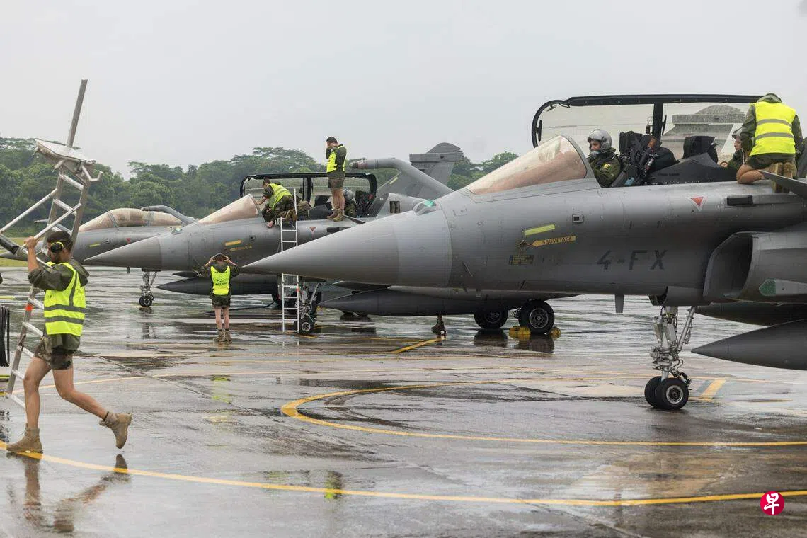 法国六架阵风战斗机和五架运输和添油机在72小时内飞行1万1000公里,从法国到新加坡交流,包括分享参与人道救援和救灾的空中行动的经验。