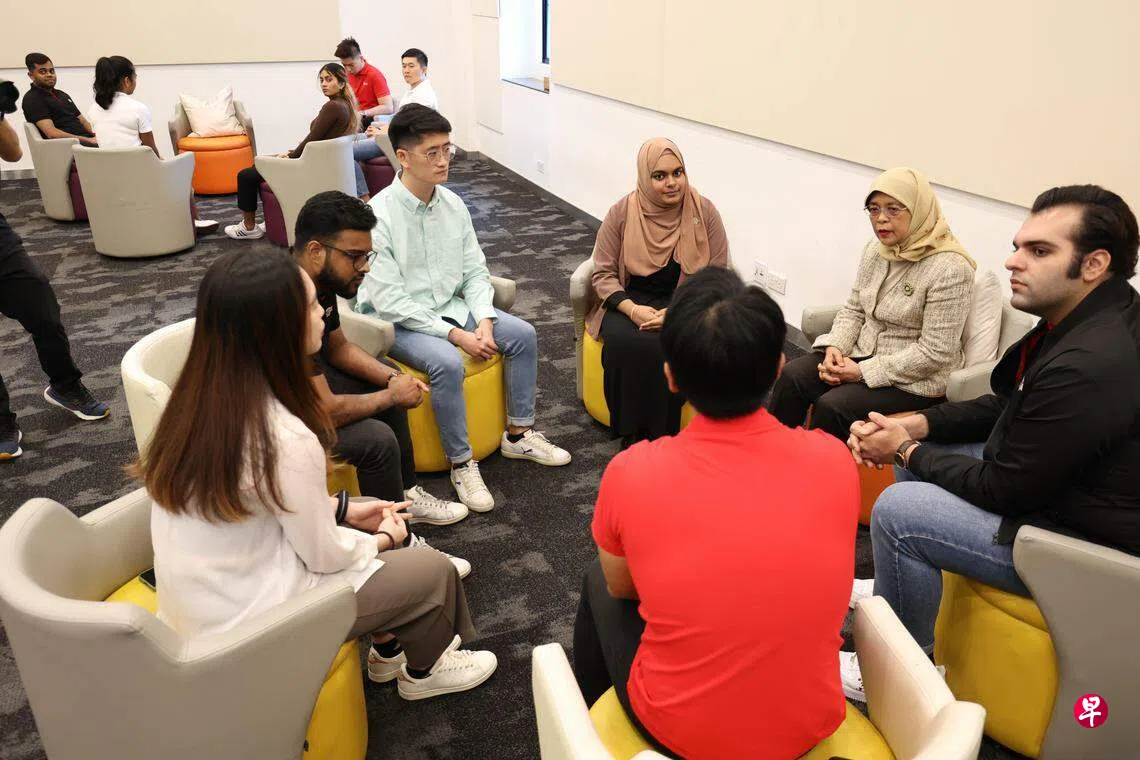哈莉玛总统星期三(6月28日)走访新加坡理工大学,了解学生近期所面临的心理压力和困扰,也向校方了解即将推出的一系列帮助学生应对心理健康挑战的计划。