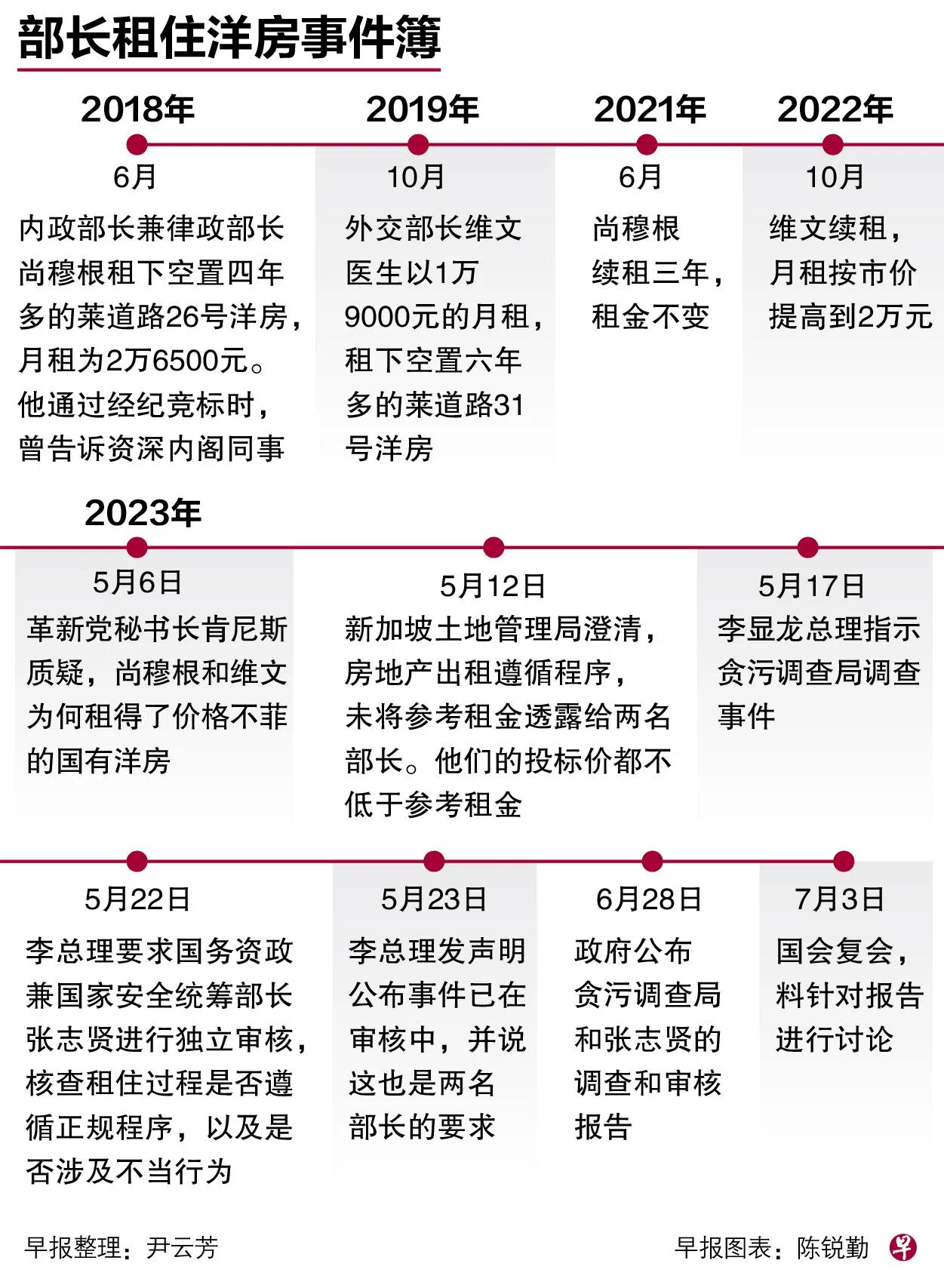 针对内政部长兼律政部长尚穆根和外交部长维文医生租住莱道路(Ridout Road)洋房,贪污调查局和国务资政兼国家安全统筹部长张志贤进行了约一个月的调查,报告于星期三(6月28日)下午公布,说明了部长租黑白洋房的程序,结论是其中没有涉及贪腐和不当行为。