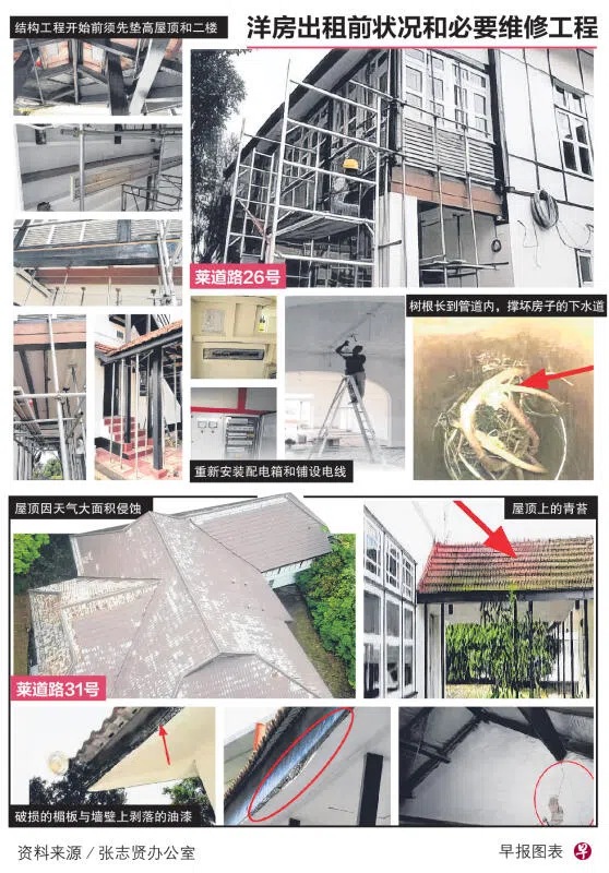莱道路26号的维护与收拾工作,包括清理房子外观和更换被树根破坏的水管等等,开销是51万5400元。土管局同意了清拆毗邻地段的要求,因为那里的植被可能会影响租户的安全,尚穆根也表示愿意自费维护这块土地。