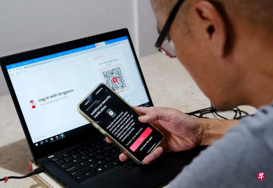 《联合早报》记者星期四登录手机应用Singpass时,系统自动跳转出“额外安全认证”的提示,告知用户使用某些服务时,可能须进行额外的脸部识别认证,而用户不能取消这项认证。