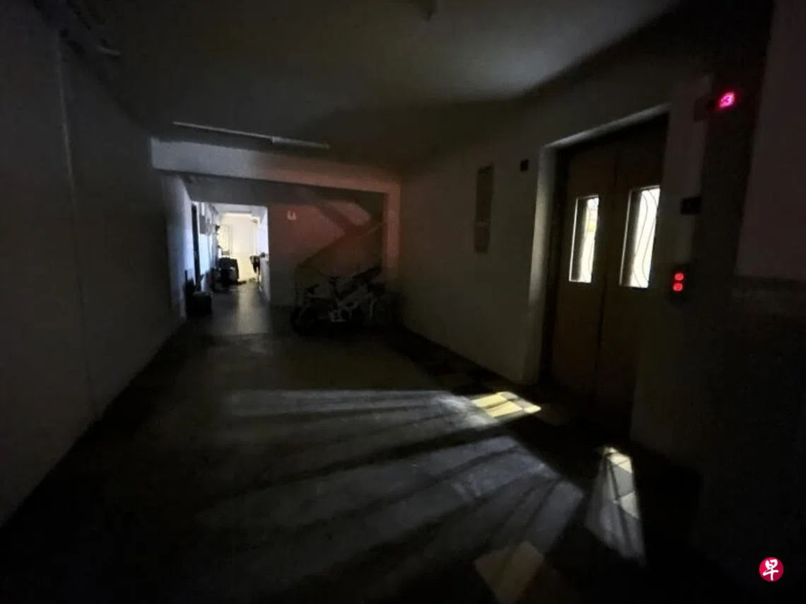 武吉班让组屋局部停电逾两小时,12座组屋底层和走廊陷入黑暗,居民摸黑回家,担心年长者跌倒。