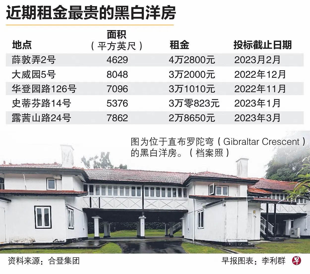 合登集团(Huttons)研究部提供给《联合早报》的数据显示,位于核心中央区(CCR)的黑白洋房平均租金约为每月2万5555元,坐落在中央区以外(OCR)的黑白洋房平均租金则约每月9359元。截至6月27日,这类房屋的月租在过去六个月估计涨了10%。