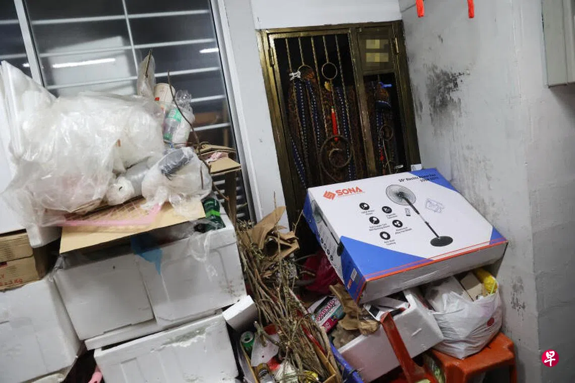 她说,去年火患发生三个月后,阿叔家人曾前来帮忙整理单位内的杂物,不过今年3月开始,阿叔故态复萌,不仅家中累积垃圾,还变本加厉,把东西摆在走廊外。