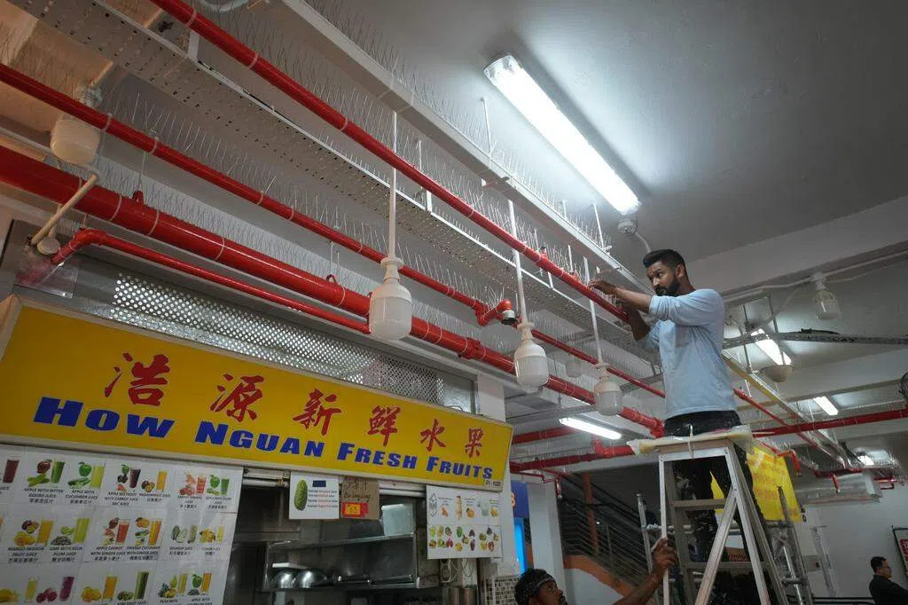为此,管理该小贩中心的惹兰勿刹市镇理事会在露天用餐区安装鸟网,防止鸽子飞入;也在横梁、屋檐和排气管上放上防止老鼠攀爬或鸽子歇脚的铁丝刺。
