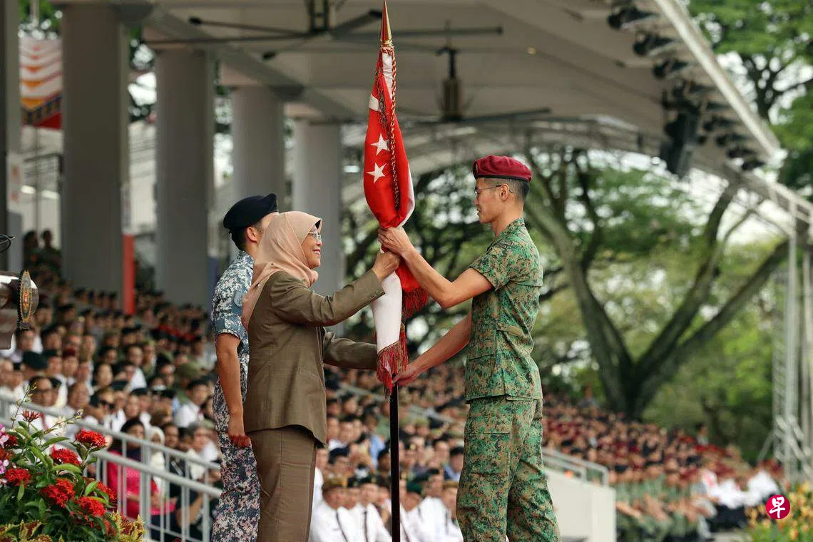 检阅礼在新加坡武装部队军训学院举行,军人们在新加坡武装部队总长孟耀诚海军中将的带领下宣读誓言,承诺效忠并且尽全力保卫国家。